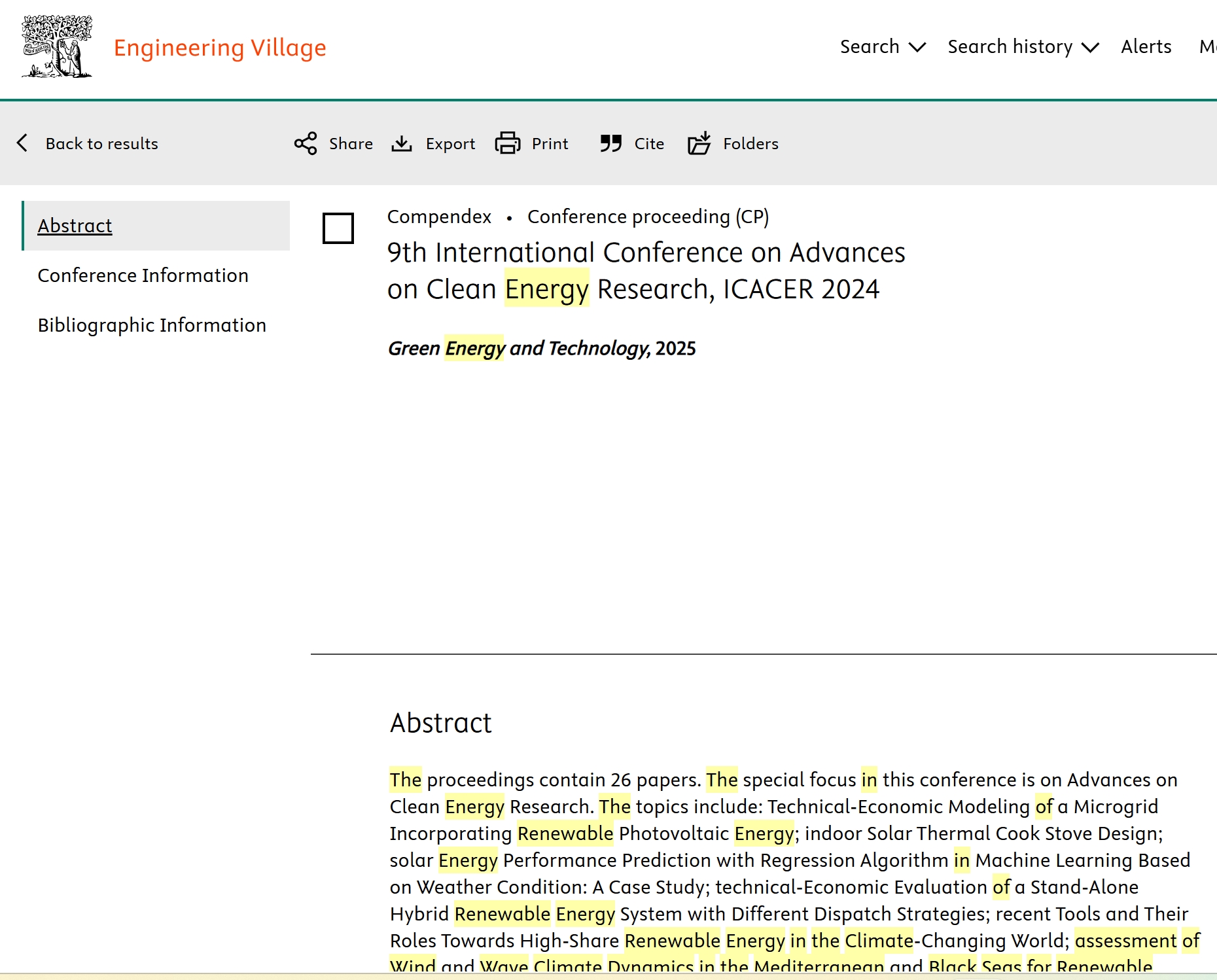 2024 9th International Conference on Advances on Clean Energy Research (ICACER 2024) will be planned in Lille, France on April 27-29, 2024, co-sponsored by Polytech Engineering School-University of Lille, supported by Universitetet of Agder, Norway and Galati University 'Dunarea de Jos', Romania, etc.